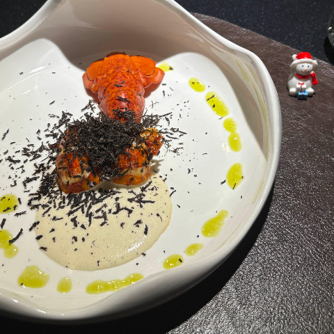 구워지는 랍스터테일과 트러플크림, 실파오일, 송로버섯의 향이 절묘하게 어우러져 입안에서 폭발하는 맛을 경험했어요