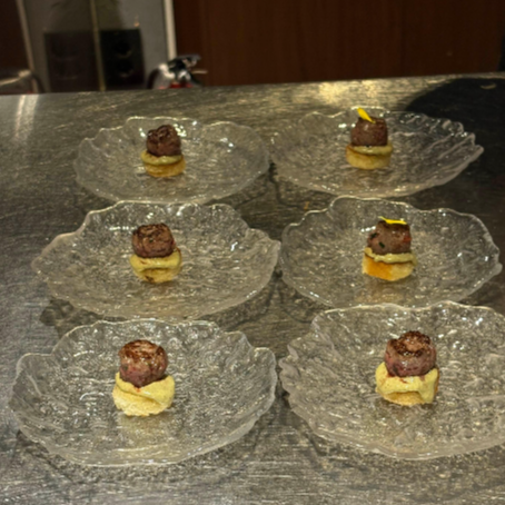 블랙타이거새우에 캐비어가 올라간 요리로 캐비어를 처음 먹어봤는데 그 풍미가 좋았어요
