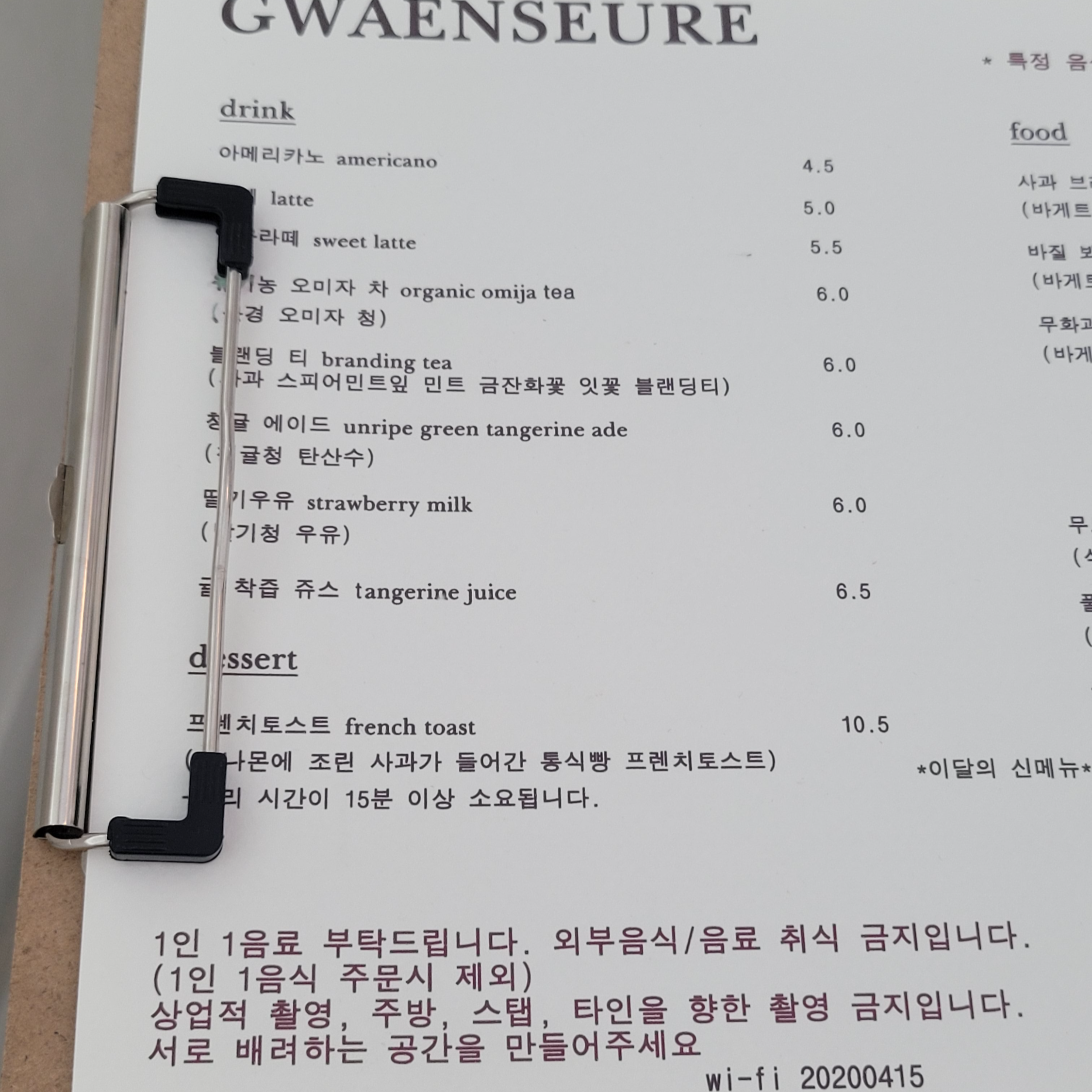 매장에 들어가면 메뉴판을 주십니다