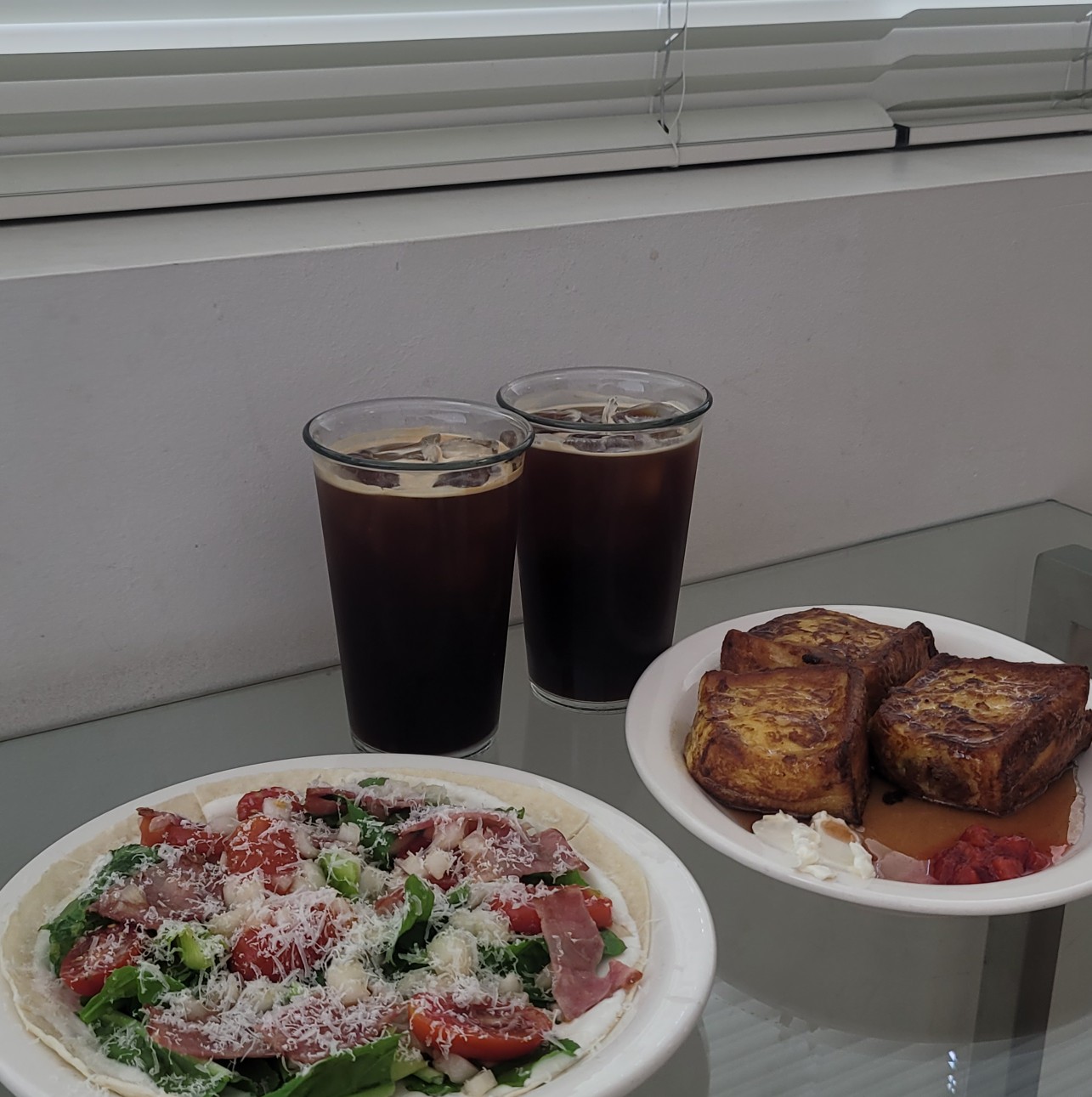 그런데 프렌치토스트랑 루꼴라플랫브레드를 주문해버린!