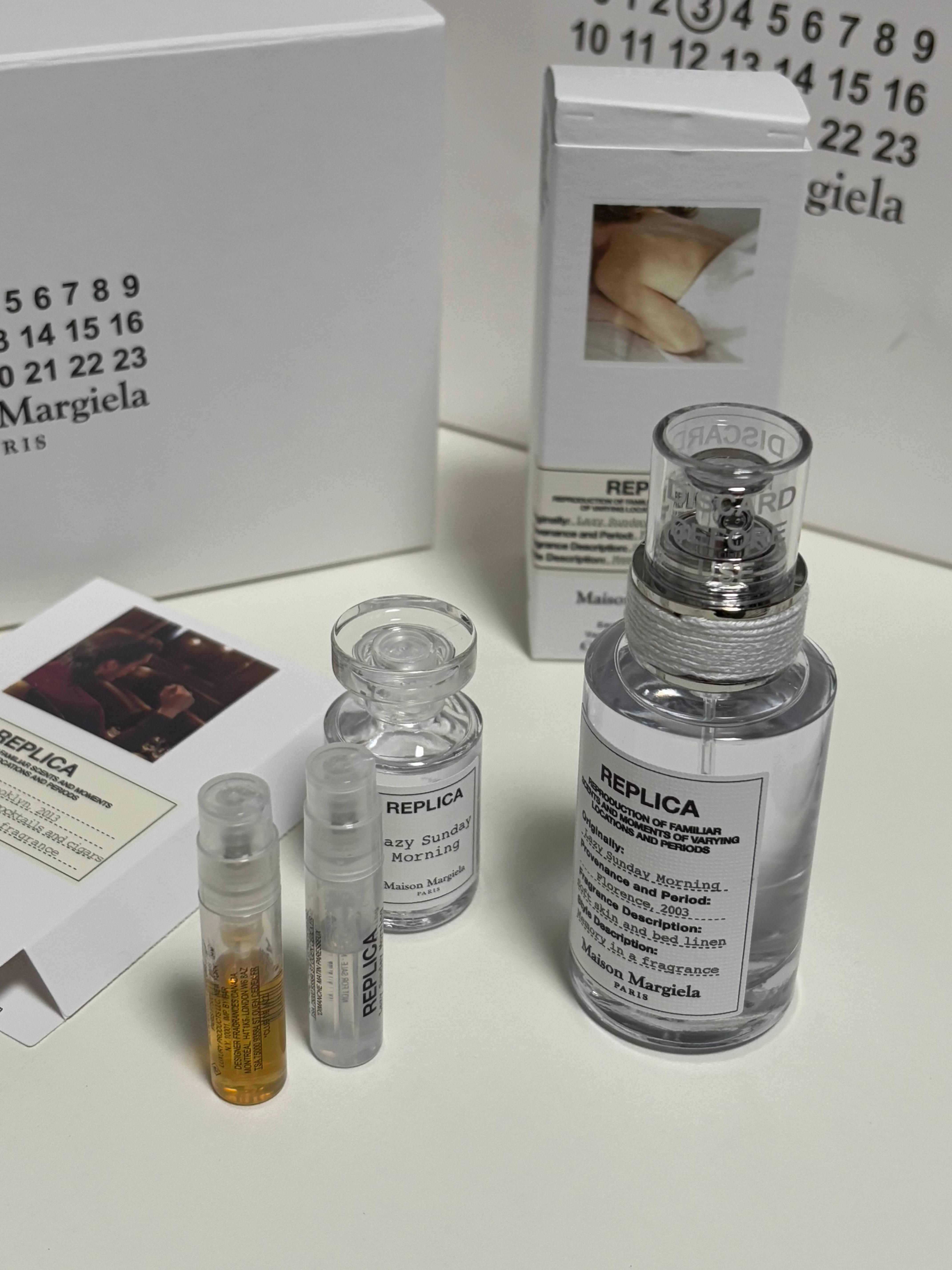 백화점 왔다갔다하면서 시향지를 받고 향이 맘에들어서 구매한 메종 마르지엘라 레플리카 '레이지 선데이 모닝' 향수
